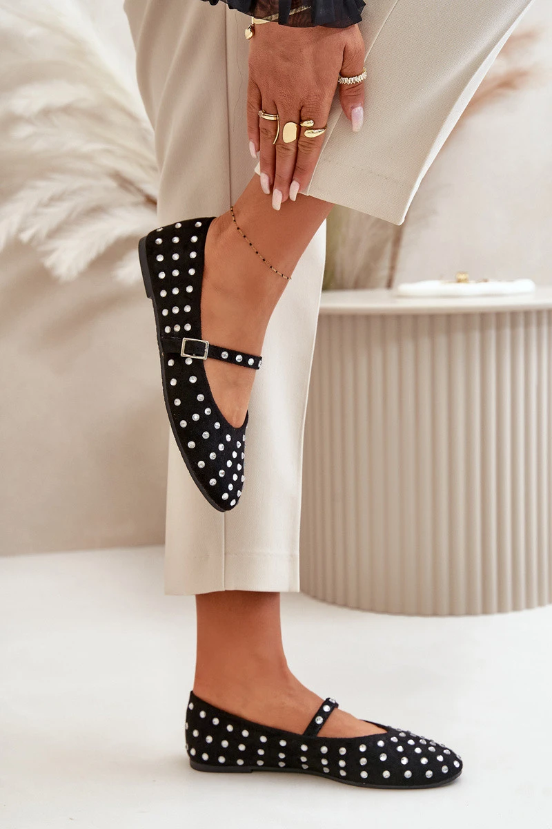 Zdobené baleríny s páskem eko černé model 21670629 - Boto