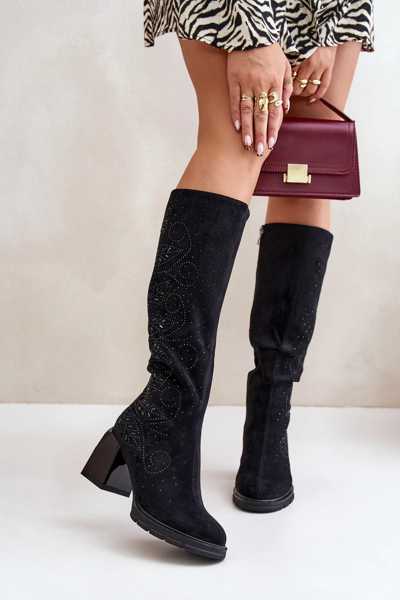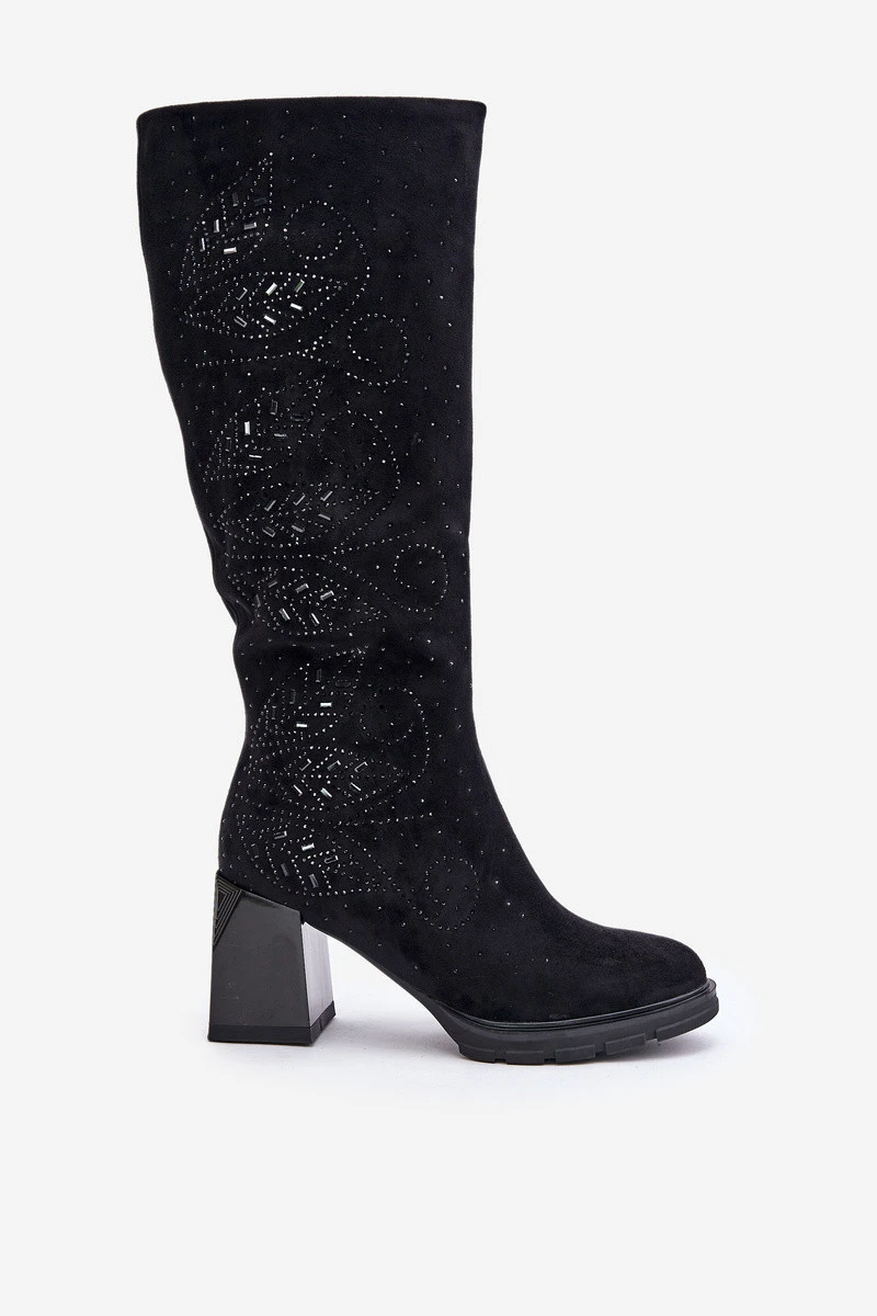 Zdobené dámské kozačky nad kolena zateplené na podpatku černé model 21671858 - S.Barski