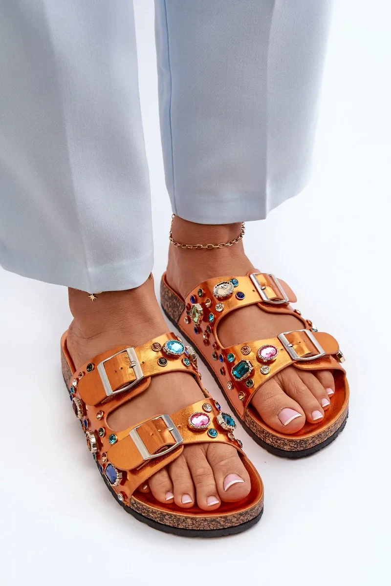Zdobené dámské pantofle přezkami S.Barski Orange