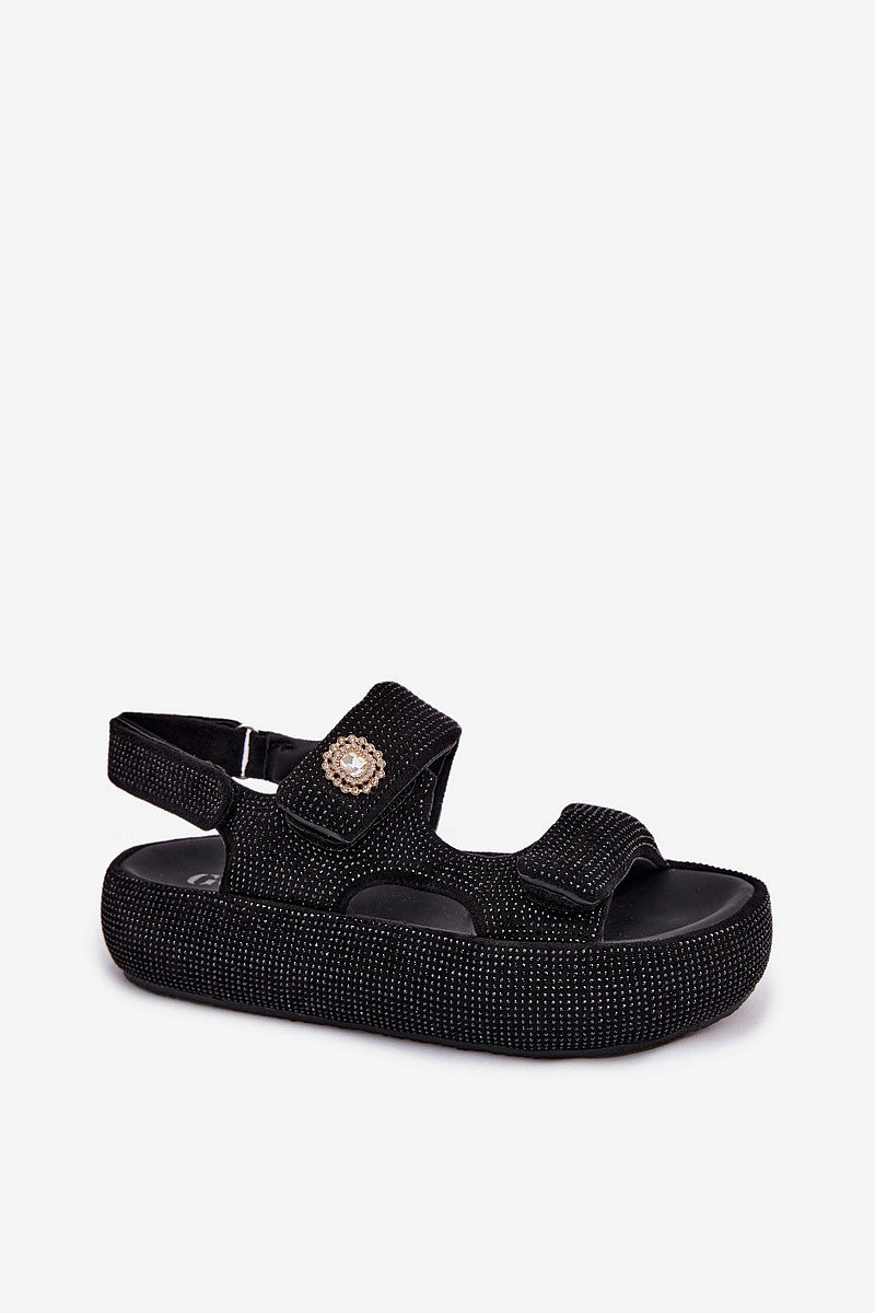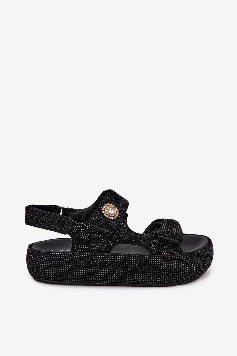 Zdobené dámské sandály na platformě model 22111259 Černé - Goe
