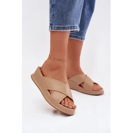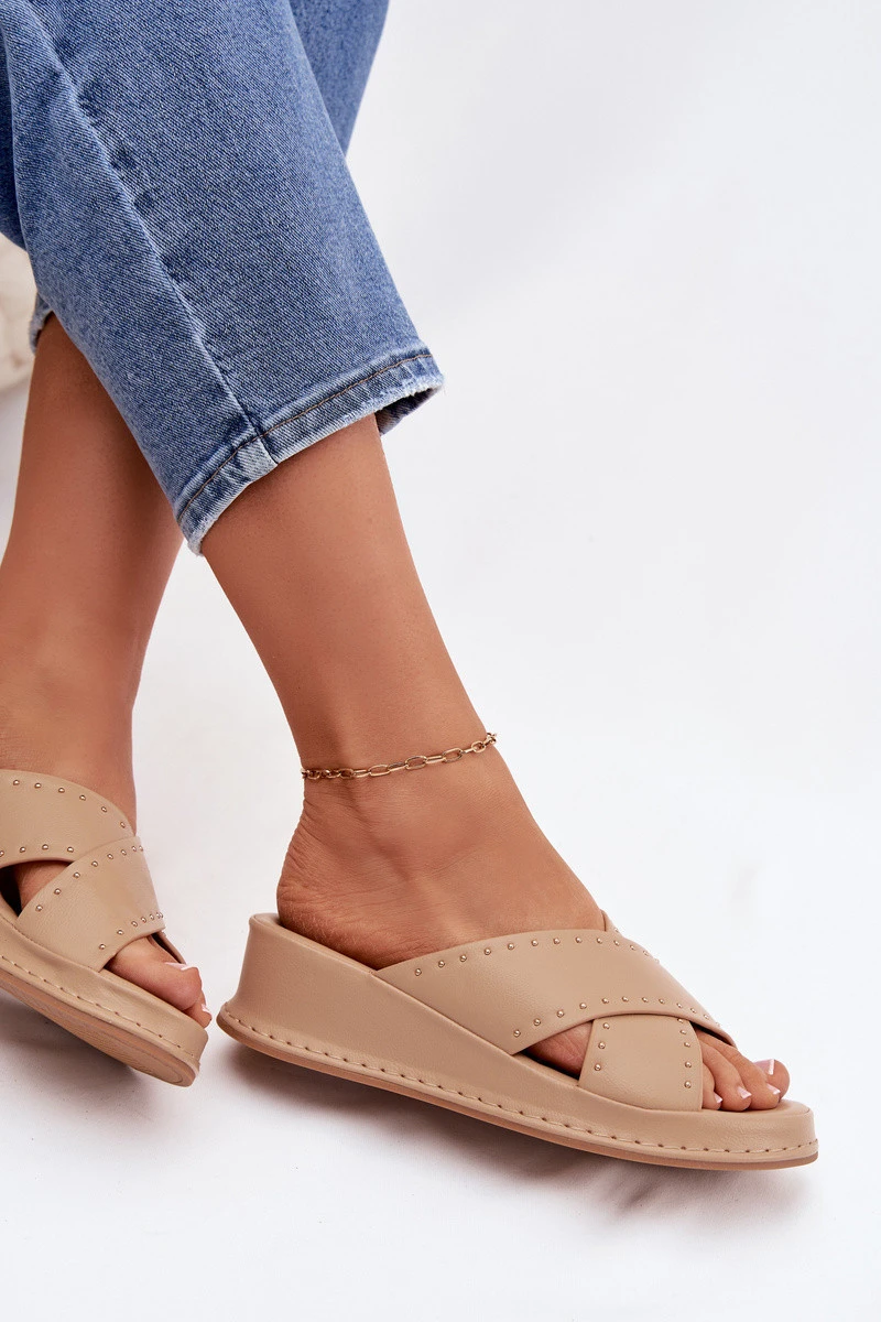 Zdobené dámské sandály na platformě z eko kůže Béžové model 21954702 - Boto