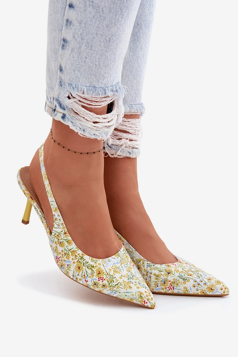 Zdobené dámské sandály na podpatku s květinovým vzorem Žluté model 22103138 - Boto