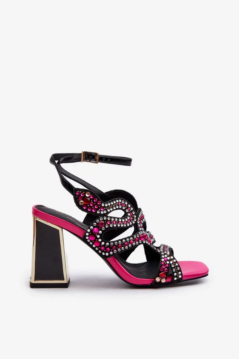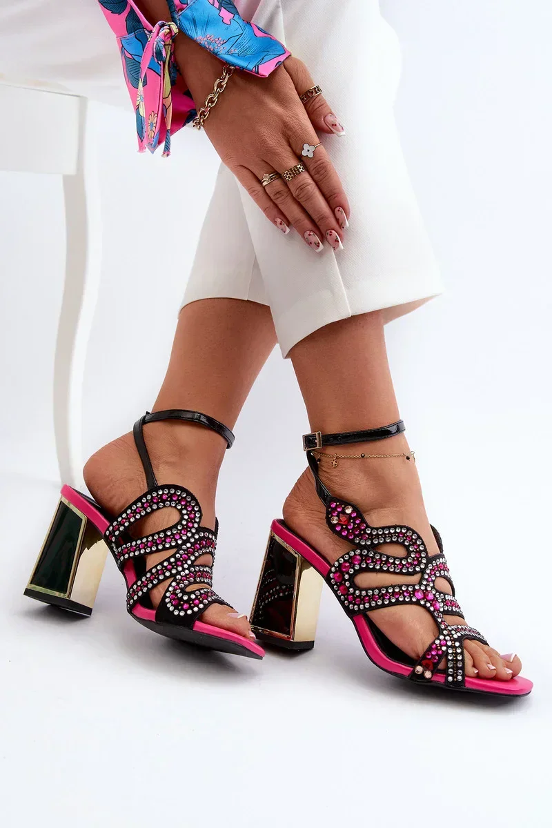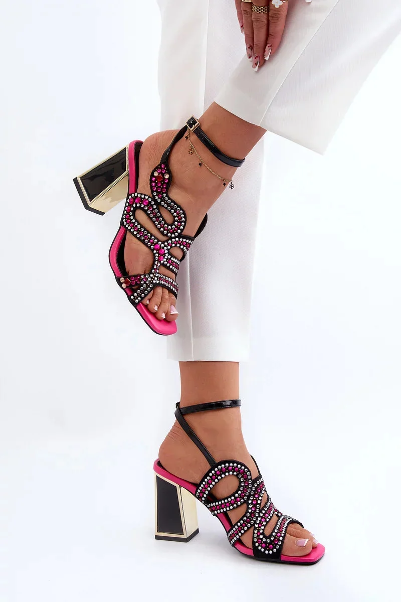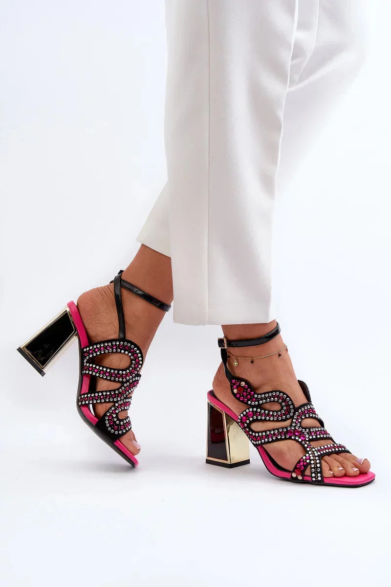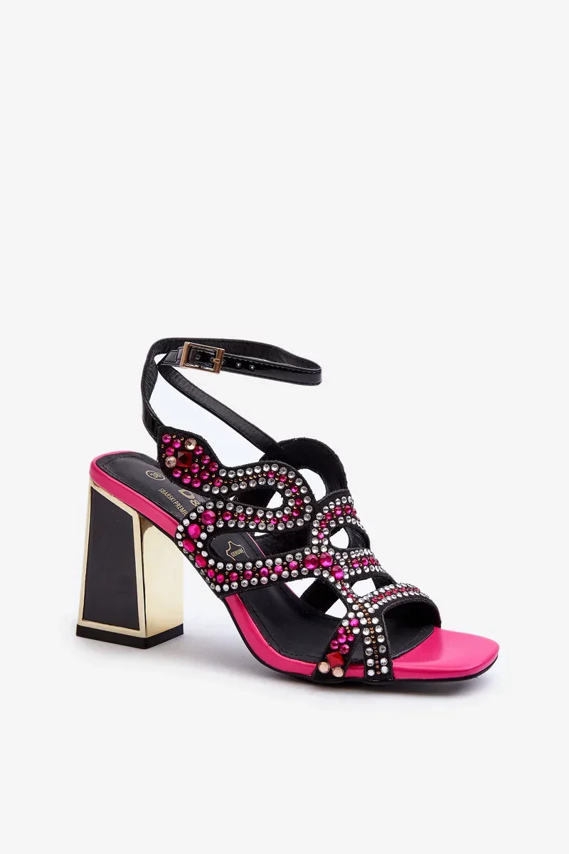 Zdobené dámské sandály na vysokém podpatku D&A Black