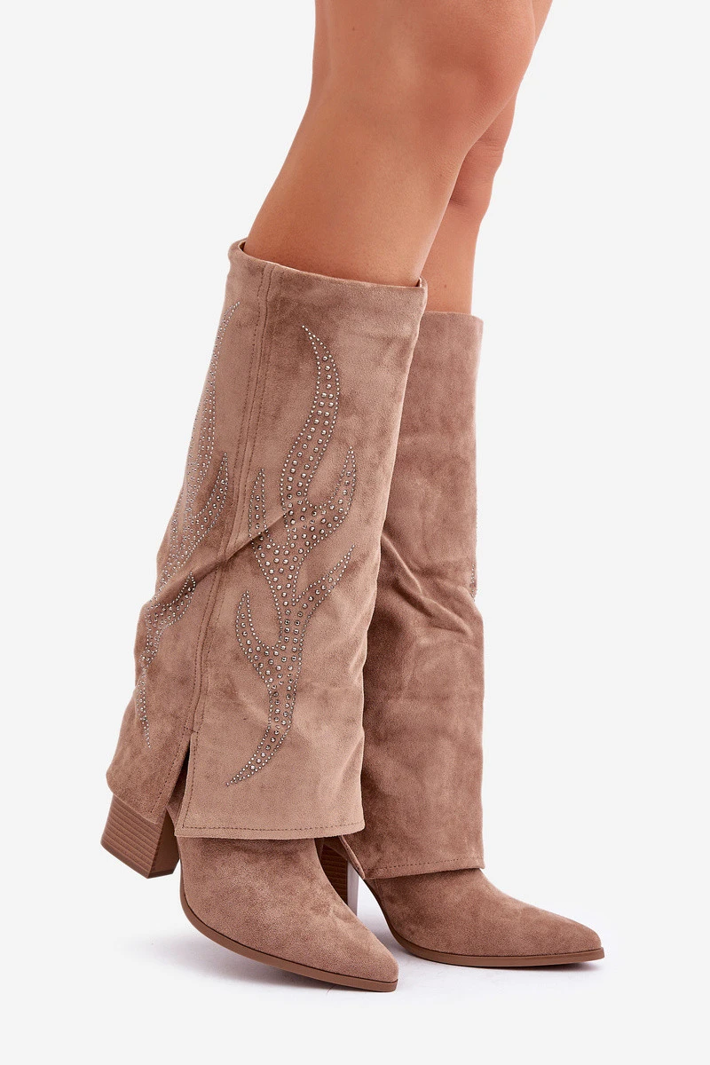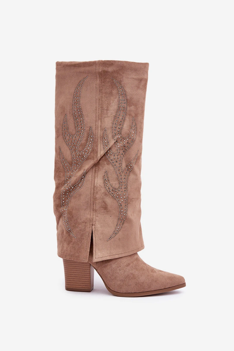 Zdobené Kozačky S Ohnutým Štítem Na Podpatku Tmavě Béžové Ivilta