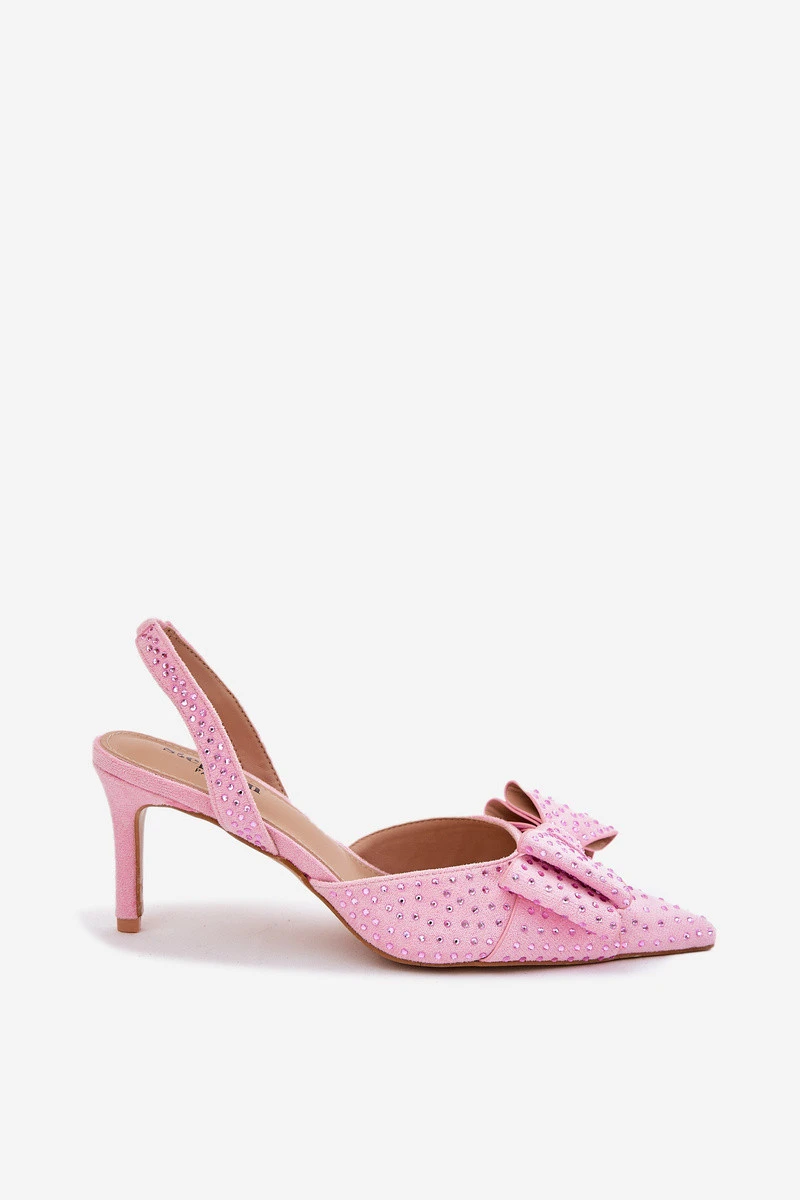 Zdobené lodičky s odhaleným patem a mašlí růžové Nilandriela