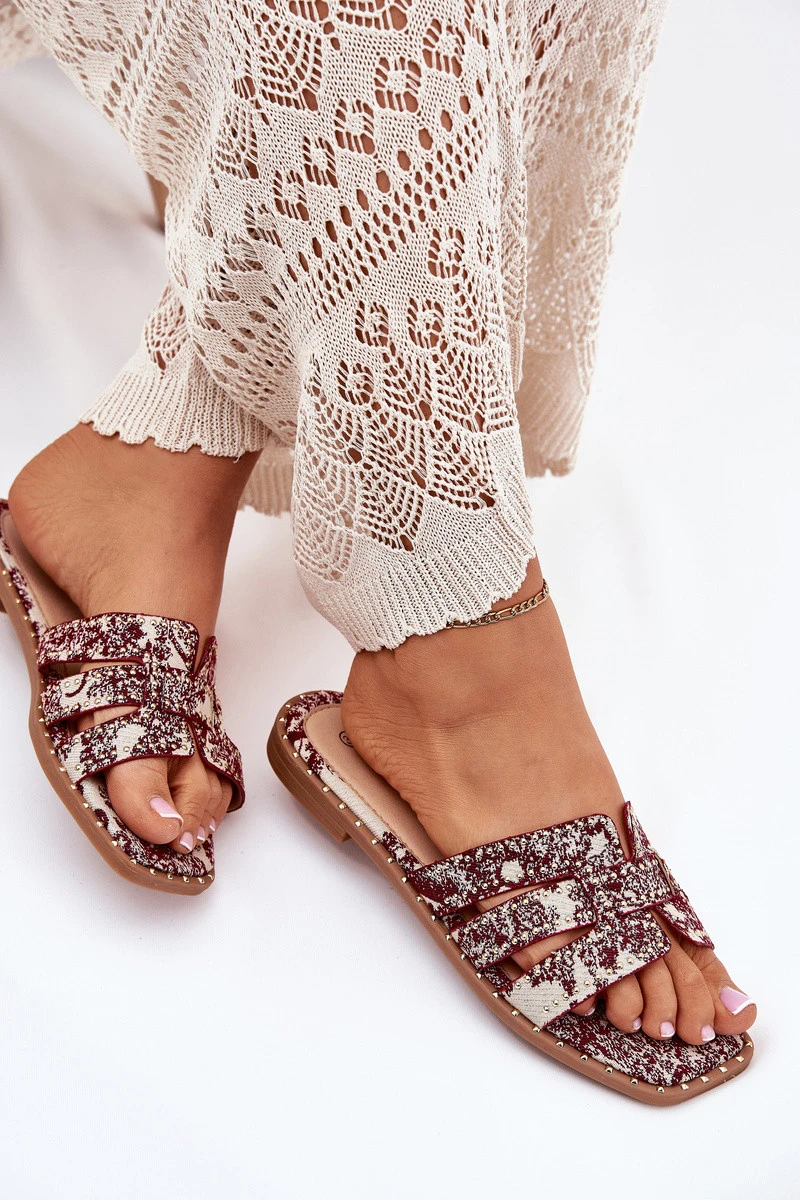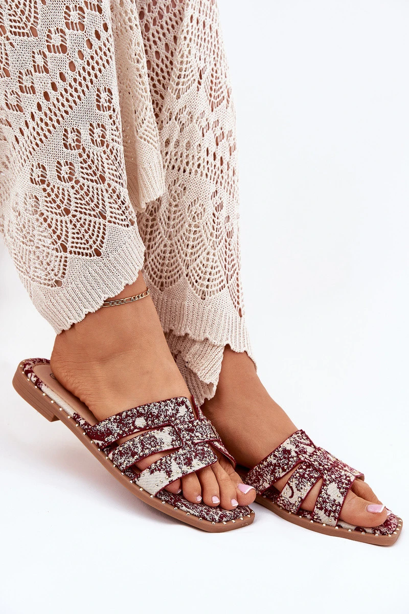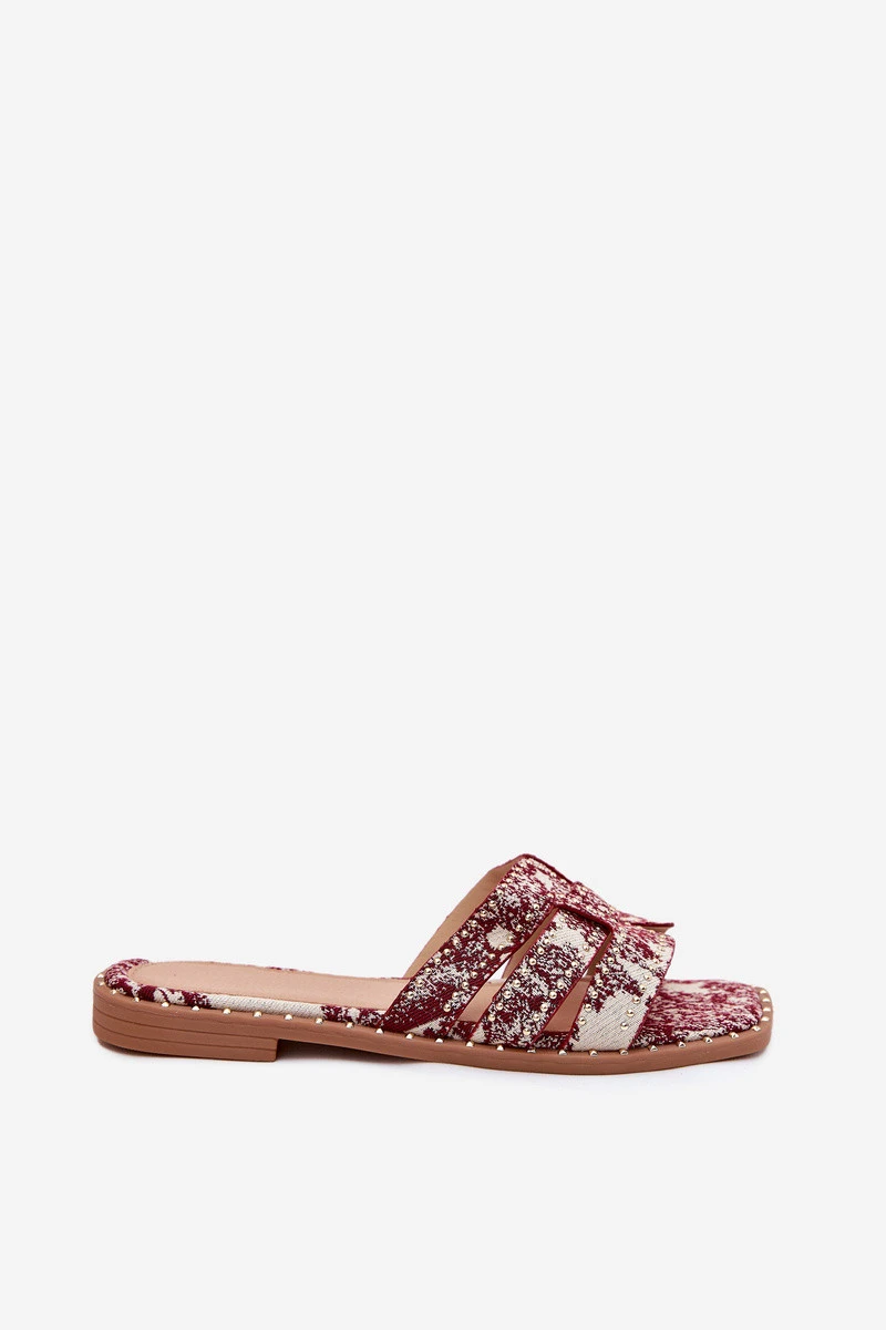 Zdobené Pantofle Na Plochém Podpatku Bordové Anniles