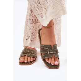 Zdobené Pantofle Na Plochém Podpatku Zelené Anniles