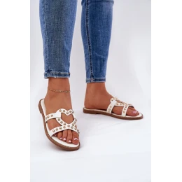 Zdobené Ploché Pantofle Dámské Bílé model 21685812 - Boto