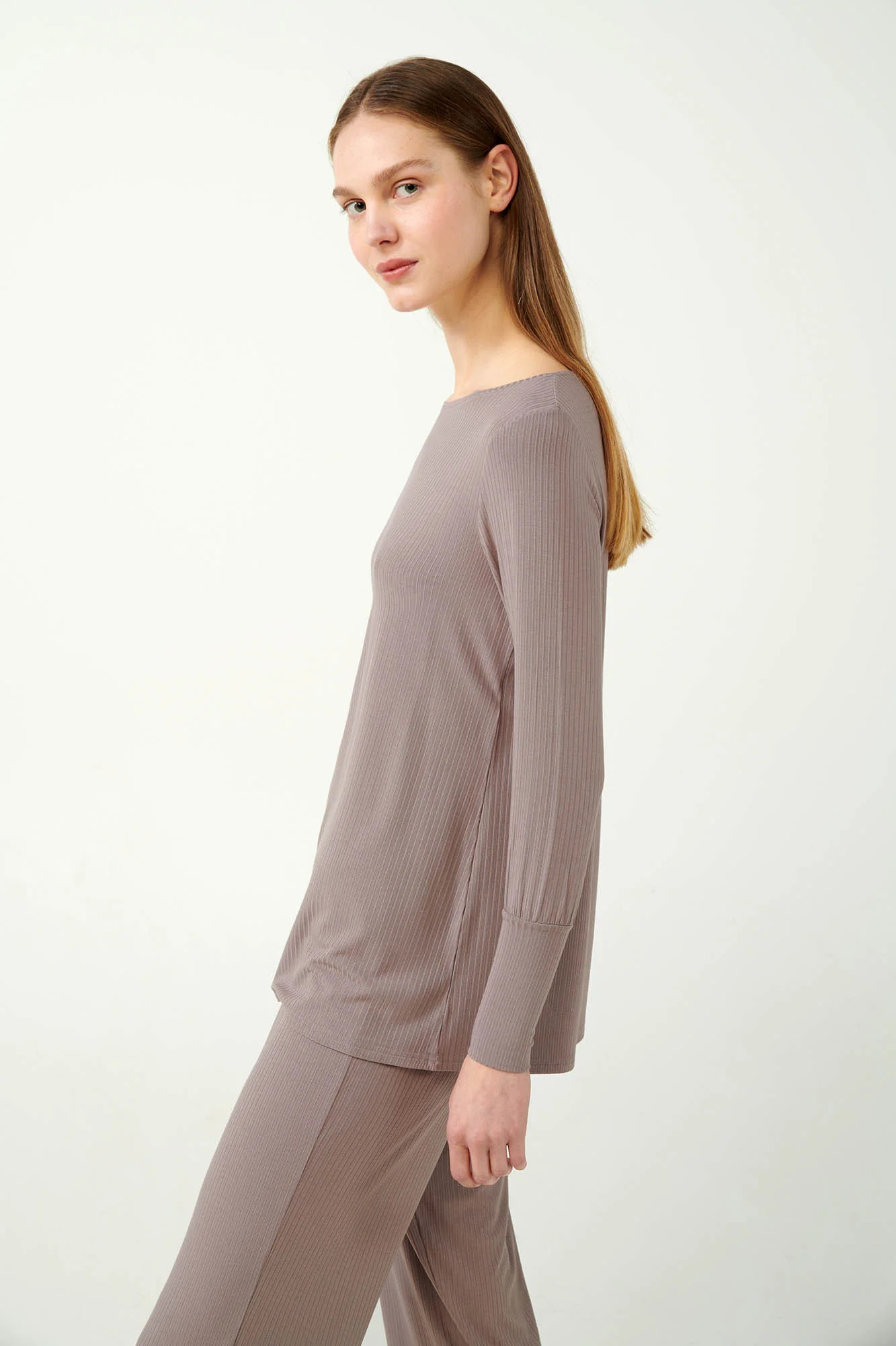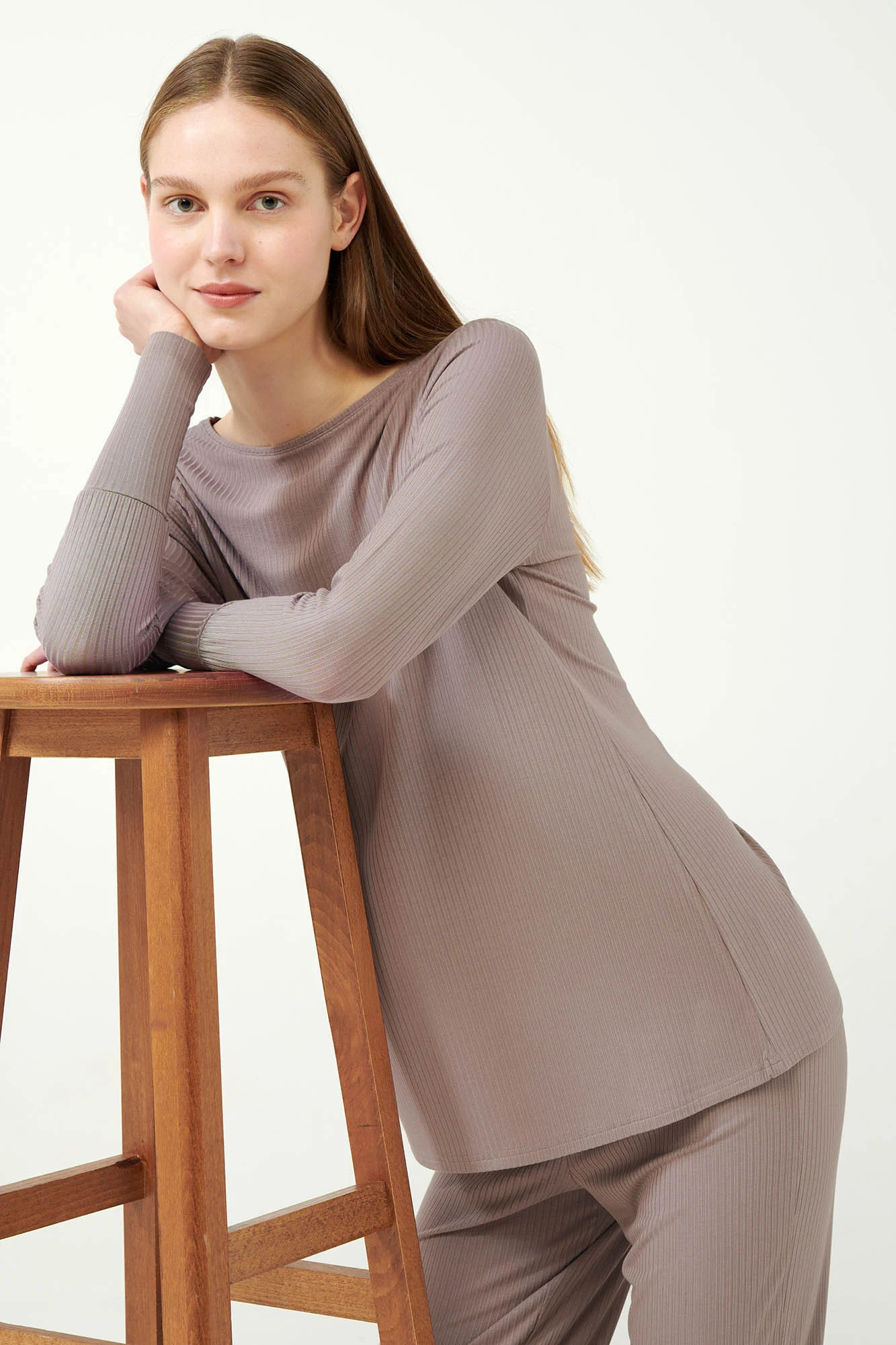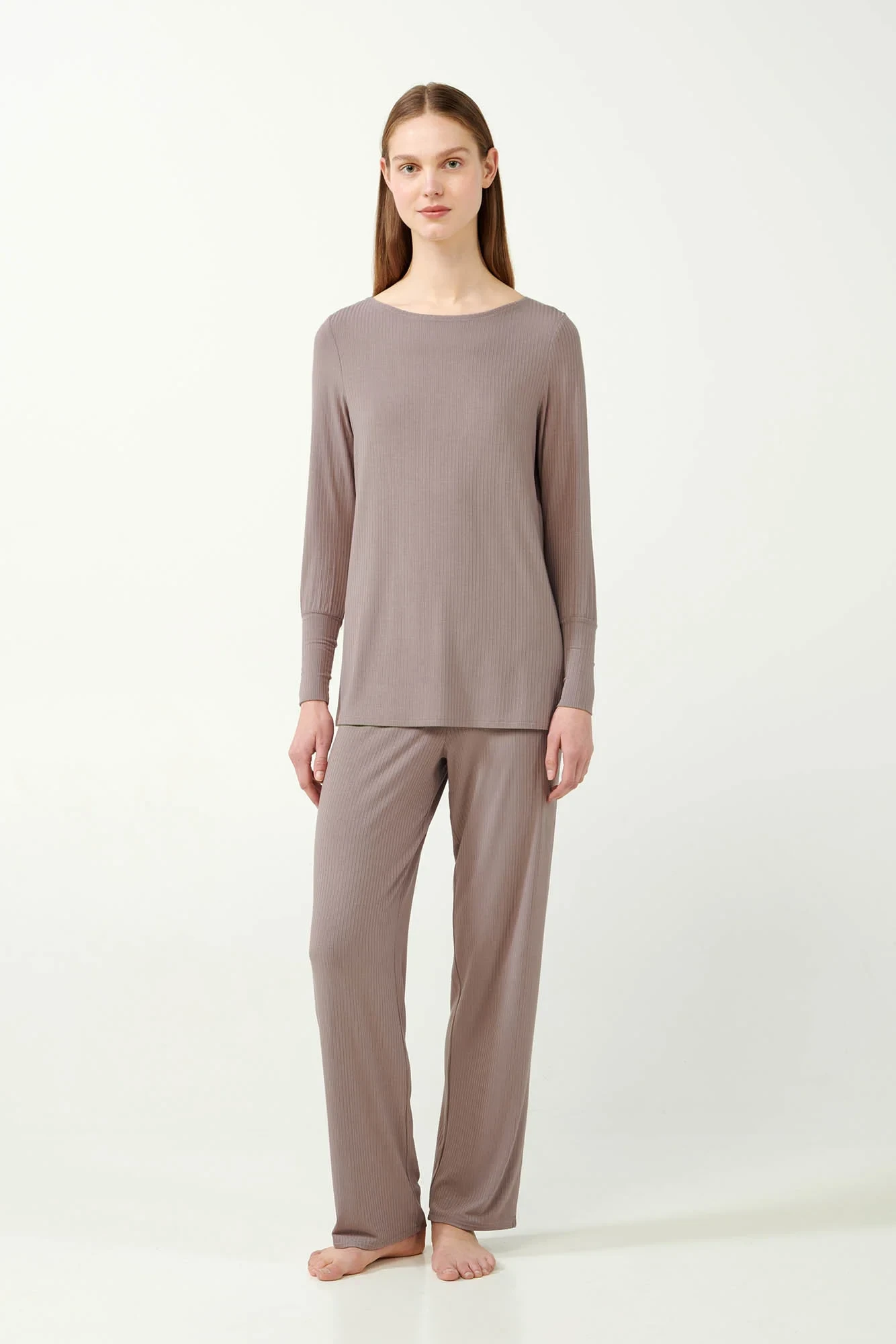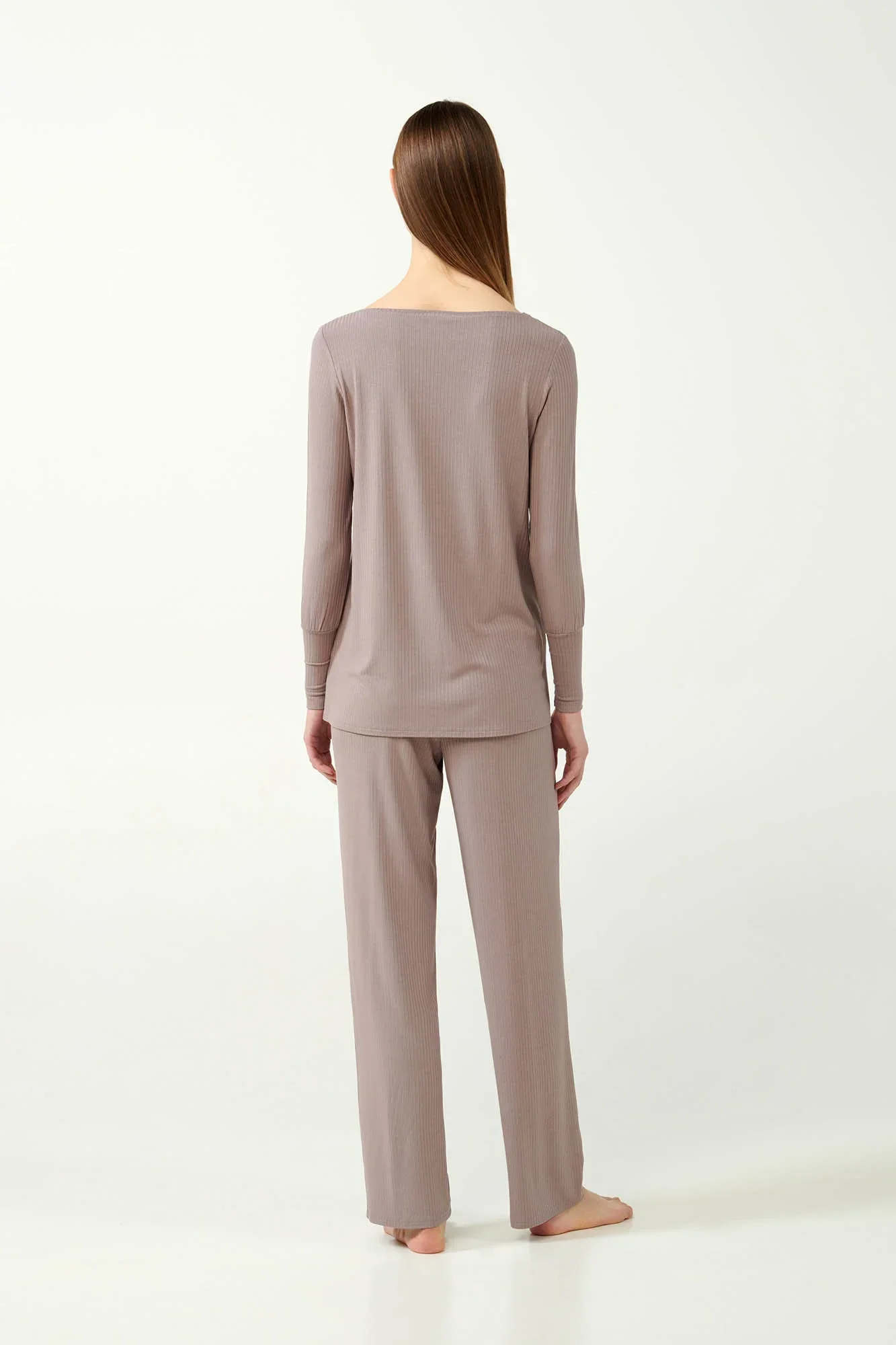 Žebrované bambusové pyžamo s rukávy model 20515825 - Vamp