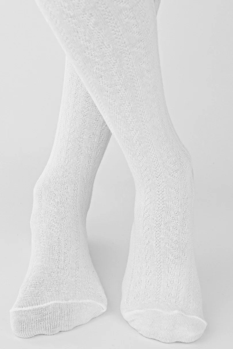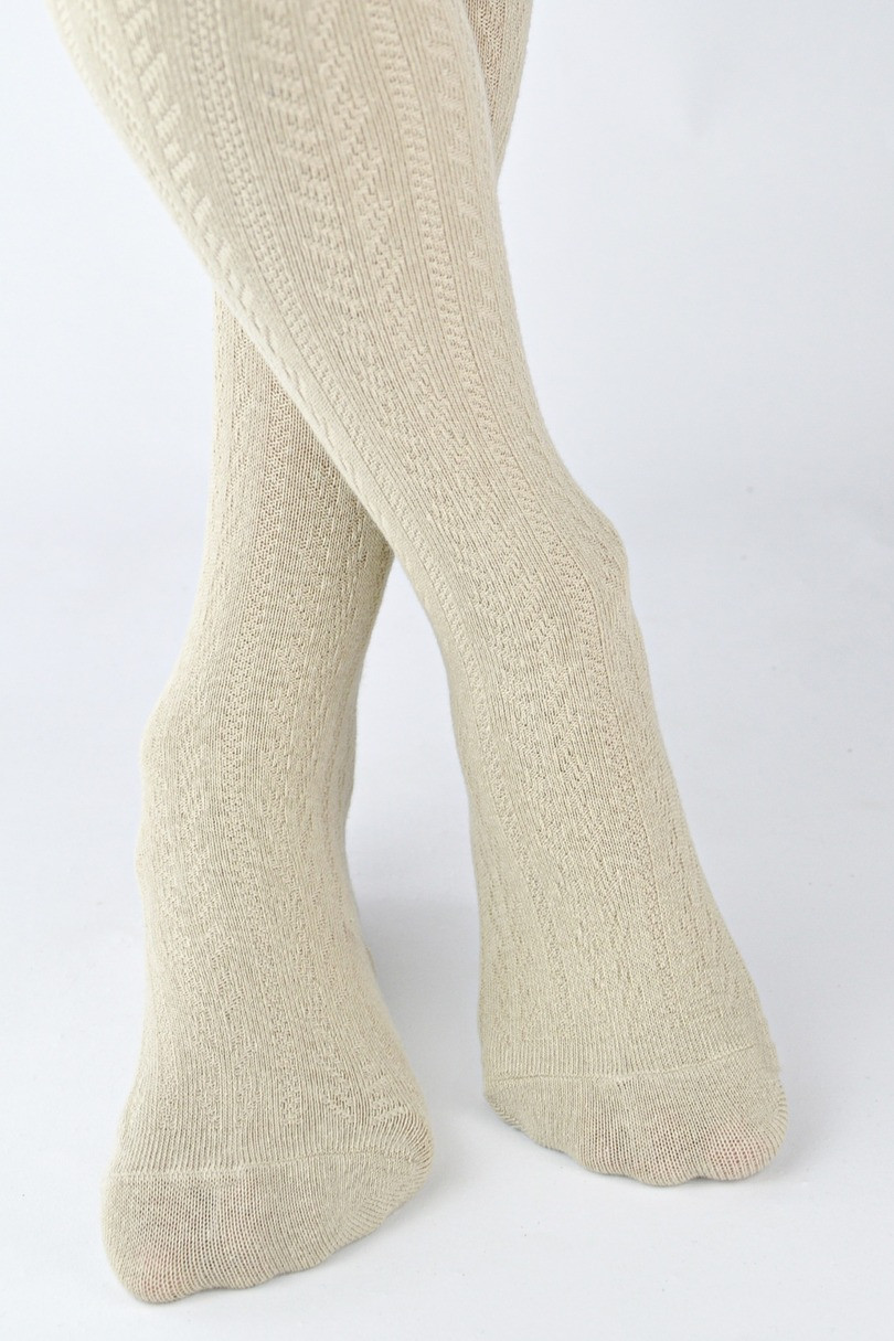 Dívčí bavlněné punčochové kalhoty s jemným pruhovaným vzorem ve tvaru rybí kostiór, které neobvykle krásně přiléhají k noze.