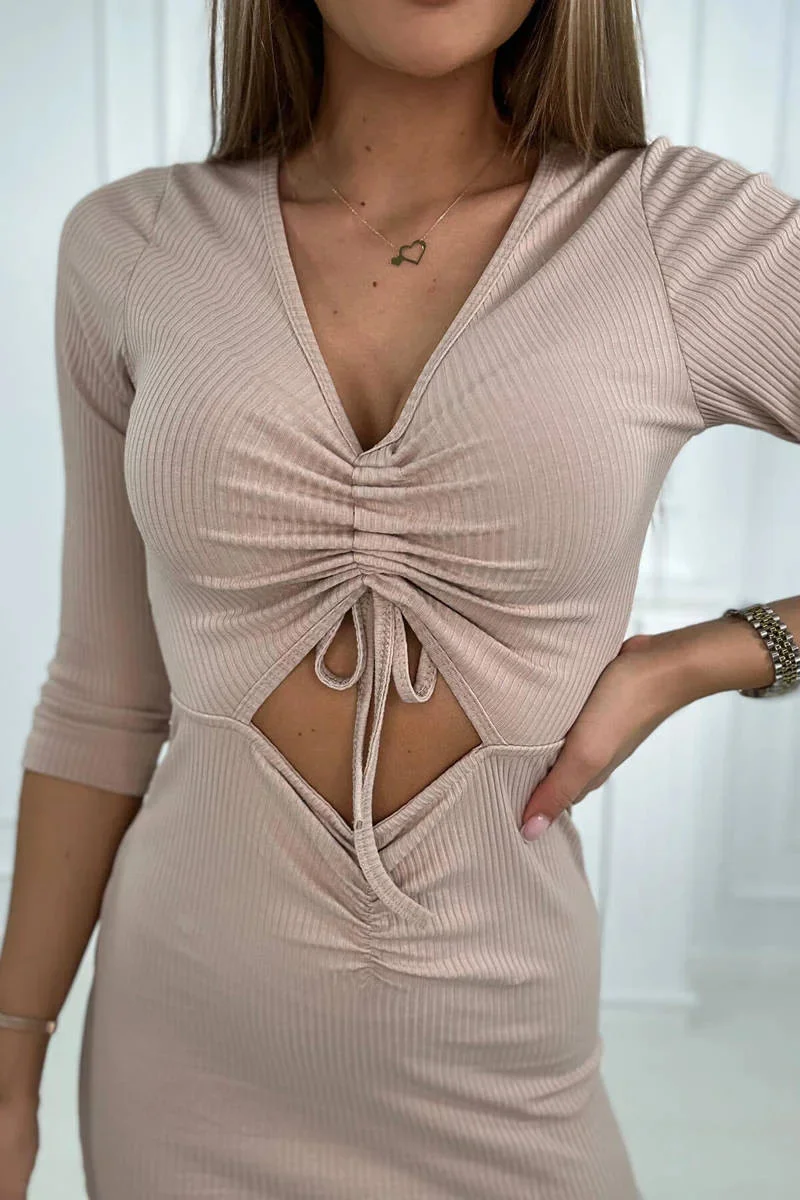 Přidání recenze k Žebrované šaty s vázaným výstřihem béžové