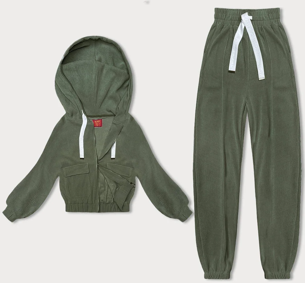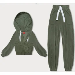 Žebrovaný teplákový komplet v olivové barvě (AMG-335A)