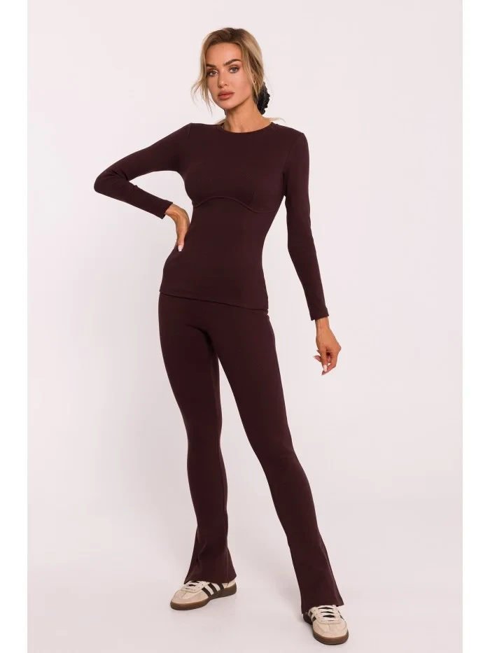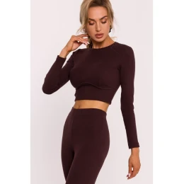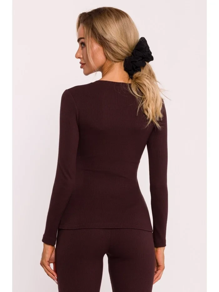 Žebrovaný top s dlouhými rukávy hnědý model 20515081 - Moe