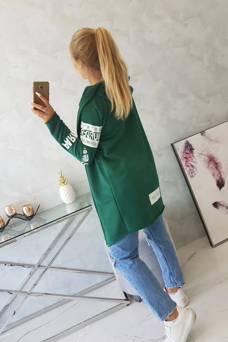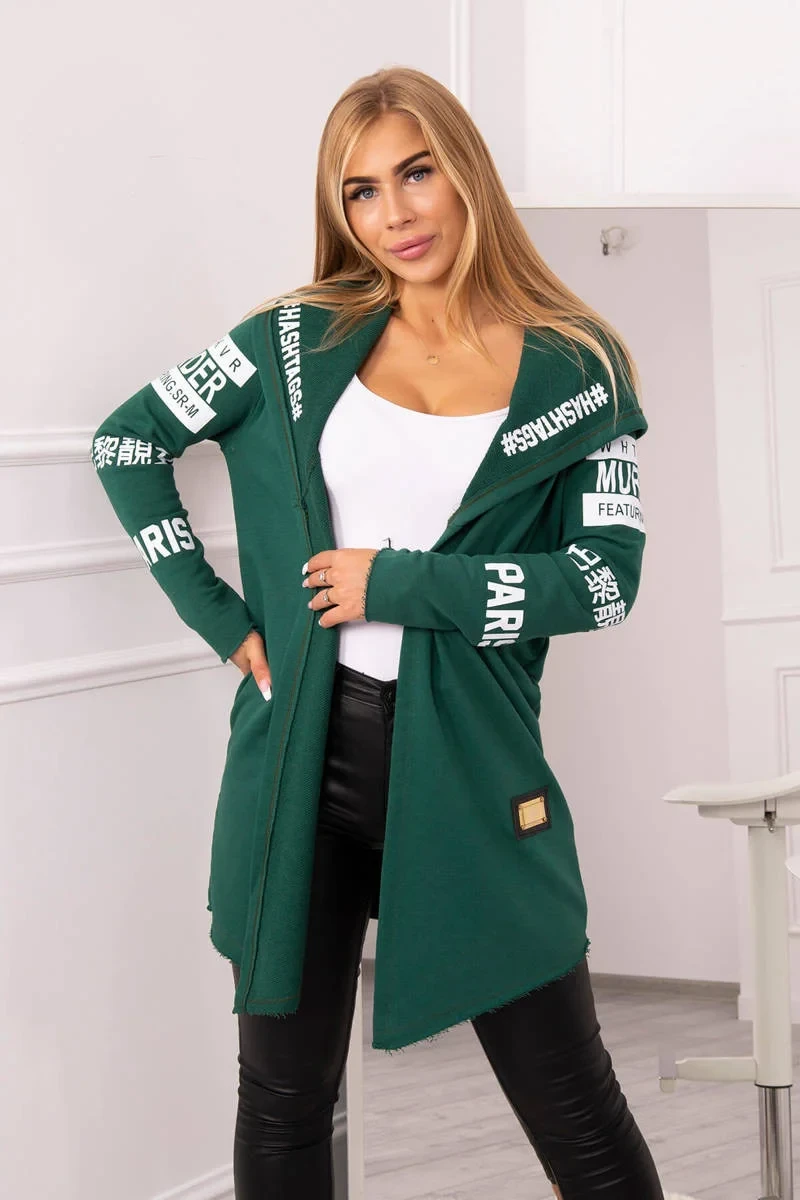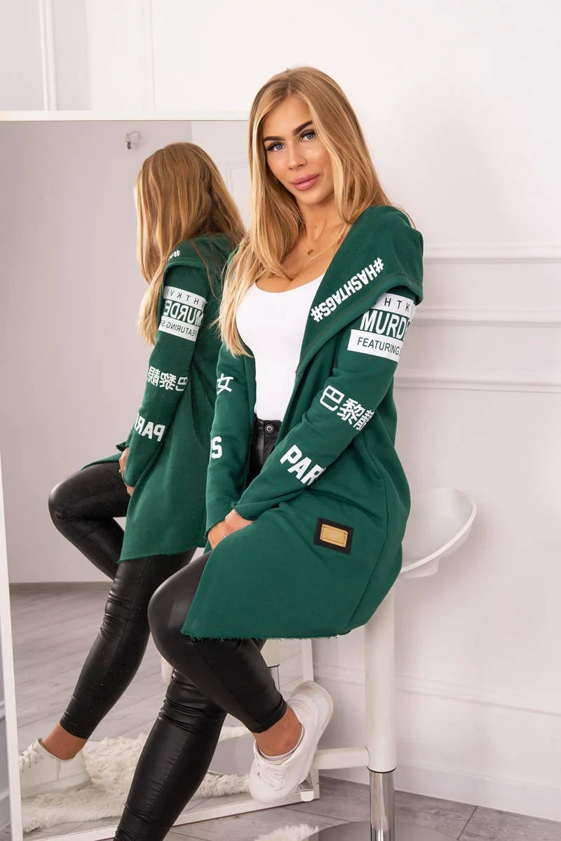 Představujeme vám dlouhou sukni s kapucí s nápisy. Bunda je vyrobena z vysoce kvalitního materiálu. Velikost je univerzální a vyhovuje dámským velikostem S, M a L