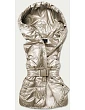 Vesta je lehce zateplená syntetickou péřovou výplní, má jednoduchý střih, dvě kapsy a zapíná se patentkami. Model má kapuci, kterou není možné odepnout. V pase je opasek. Model má délku k bokům.