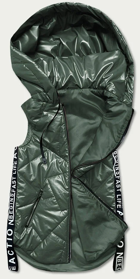 Zelená dámská vesta s ozdobnými páskami (B8011-10)