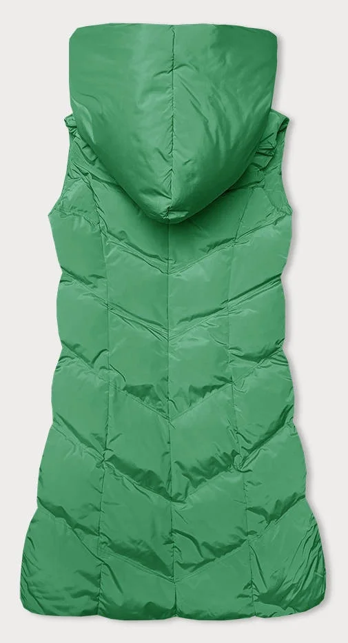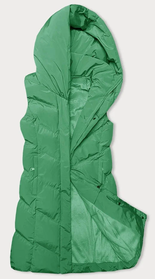 Zelená dámská vesta se stojáčkem a kapucí (23-011)