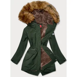 Zelená dámská zimní bunda parka s kožešinovou podšívkou (m21312)