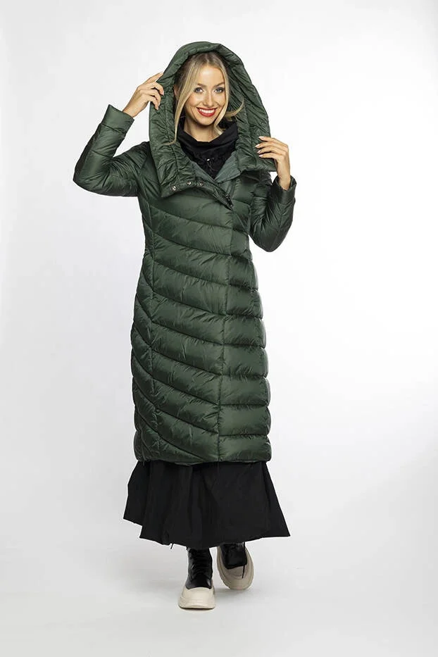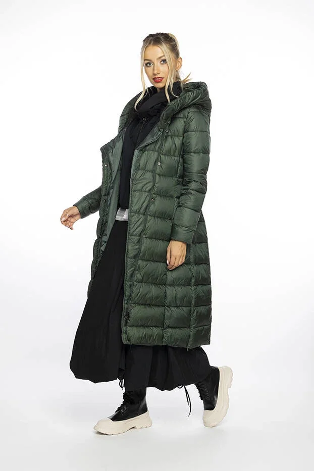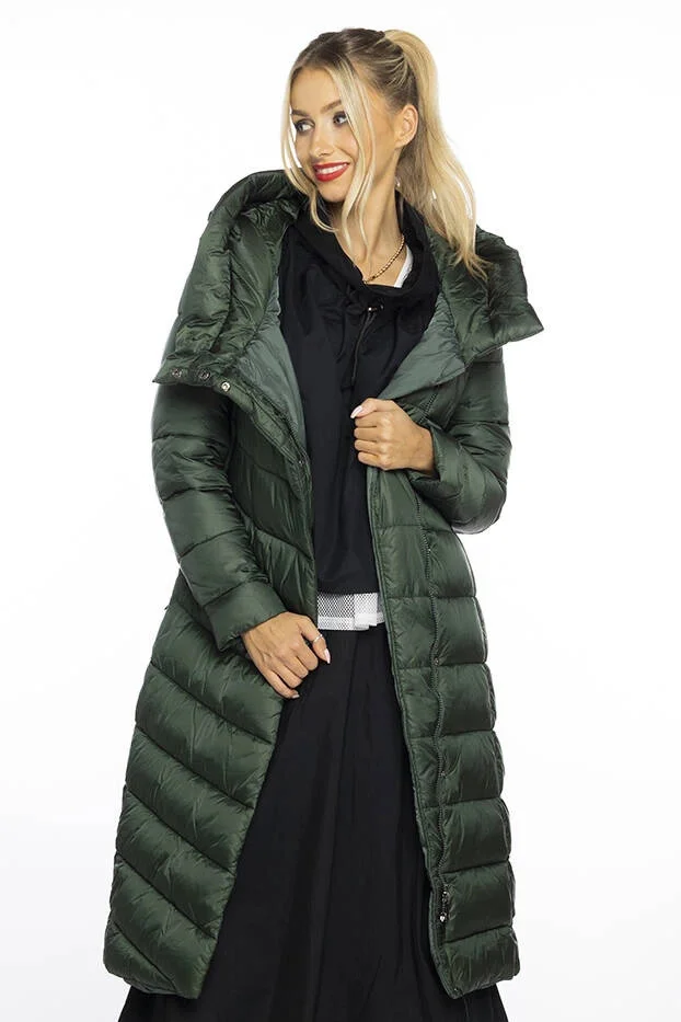 Zelená dlouhá dámská bunda s kapucí Ann Gissy (AG1-J9169)