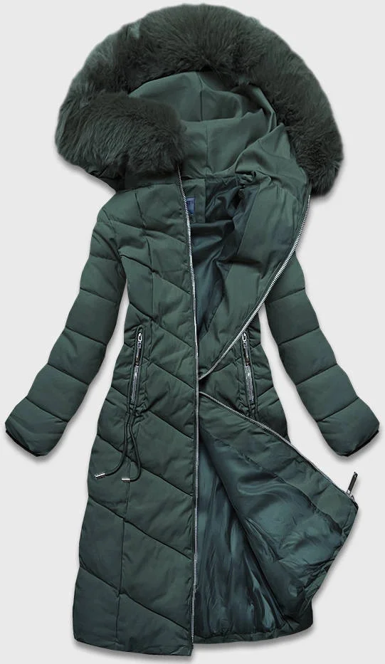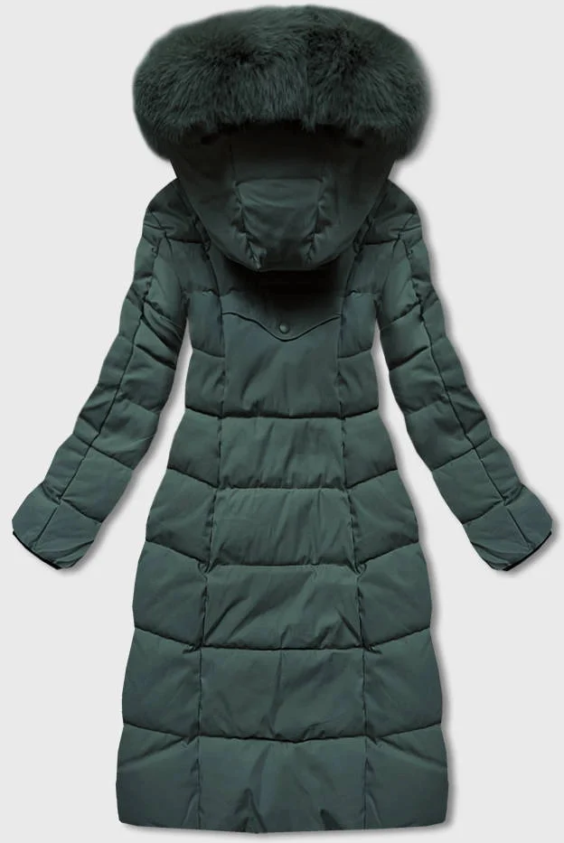 Zelená dlouhá klasická zimní dámská bunda (B8075-10)