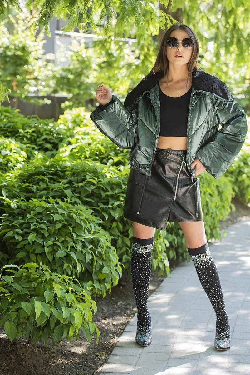 Přidání recenze k Zelená krátká dámská oversize bunda se širokými rukávy (j9-016)