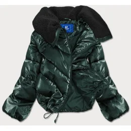 Zelená krátká dámská oversize bunda se širokými rukávy (j9-016)
