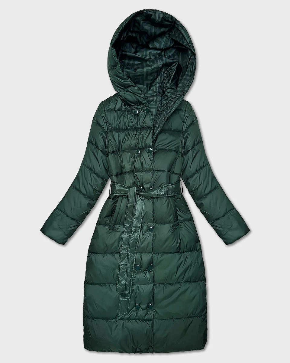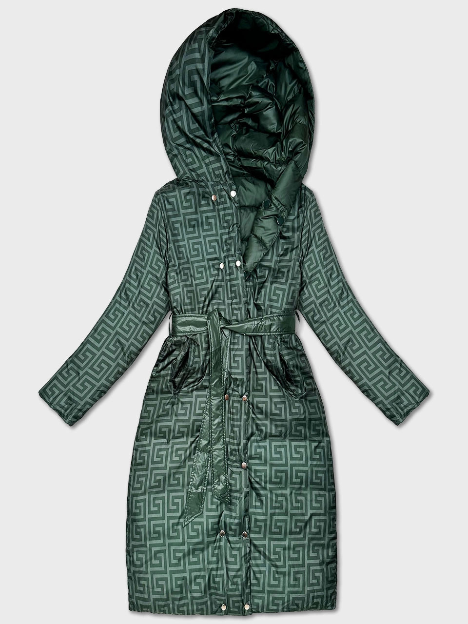 Zelená oboustranná dlouhá bunda s kapucí (P22-6638-33+33)