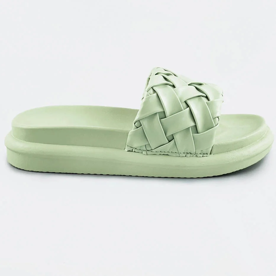 Zelené dámské pantofle se zapleteným páskem (XA-137)