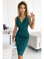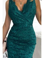 Zelené krajkové dámské midi šaty s přeloženým obálkovým výstřihem model 17911520 - numoco
