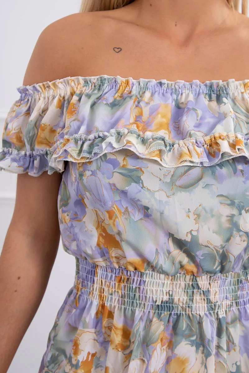 Představujeme vám pohodlné květinové šaty. Šaty s elastickým pasem. Španělské šaty s volánky. Velmi módní střih. Šaty jsou vyrobeny z vysoce kvalitního materiálu. Velikost je univerzální a vyhovuje dámám, které nosí velikost S, M nebo L.