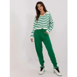 Přidání recenze k Zeleno/ecru úpletový dámský pruhovaný komplet (0610)