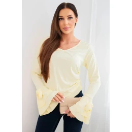 Ženská pruhovaná blůza s V výstřihem a volány na rukávech žlutá