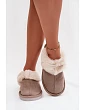 Dámské domácí pantofle vyrobené z ekologického semiše. Vrchní část zdobí kožíšek, který jim dodává šarm a zdůrazňuje jejich zimní charakter. Vnitřek je vyteplený, což zajišťuje teplo a pohodlí při každodenním nošení. Široké, zakryté špičky zajišťují volnost pro nohy a pohodlí při každém kroku. Ideální pro domácí odpočinek – teplé, měkké a stylové. Při výběru velikosti se řiďte tabulkou velikostí. Při výběru velikosti se řiďte tabulkou velikostí.