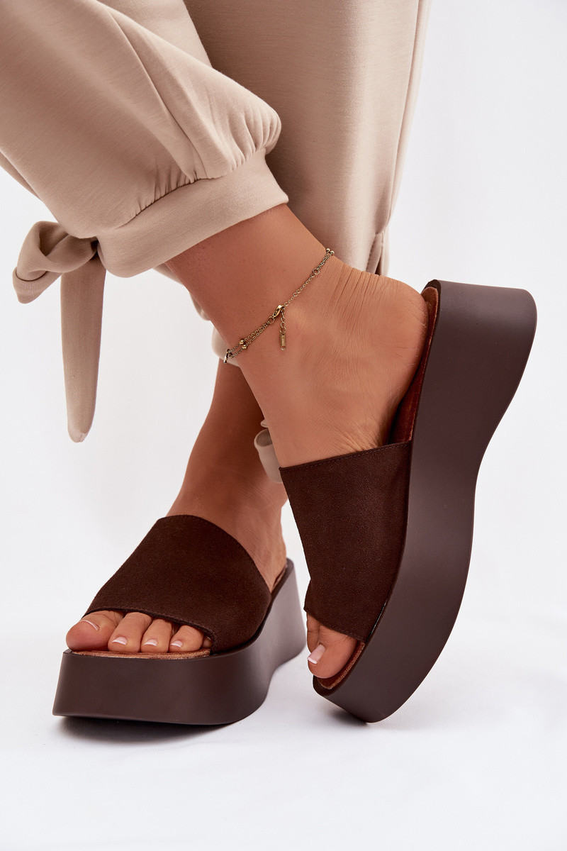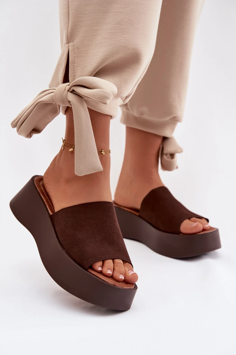 Dámské nazouváky na platformě jsou pohodlnou a stylovou volbou na horké dny. Pásek je vyroben z eko semiše. Měkká vložka zajišťuje pohodlí po celý den. Stabilní platforma mírně zvedá postavu, aniž by obětovala pohodlí. Tento model se skvěle hodí do každodenních letních outfitů. Při výběru velikosti se řiďte tabulkou velikostí.