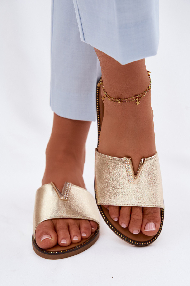 Ženské ploché pantofle s ozdobným detailem V Zlaté Nelmira