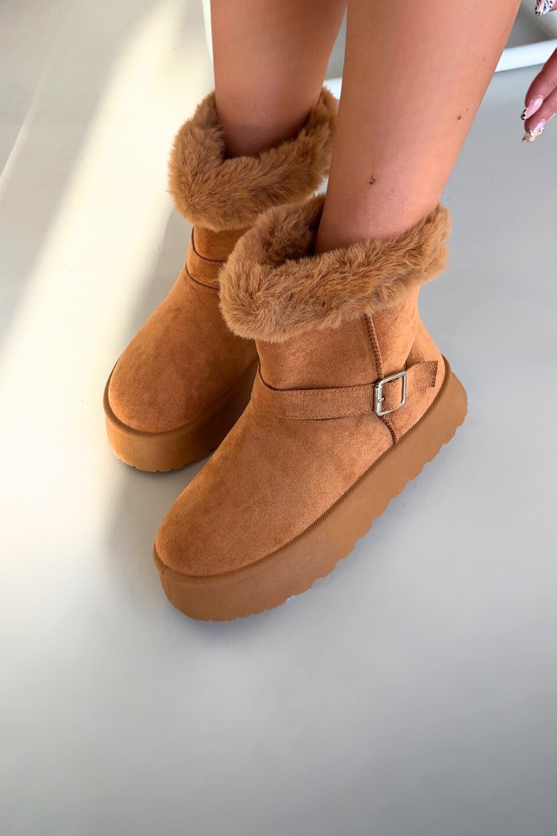 Ženské sněhule na platformě s přezkou a kožešinou Camel Jesella