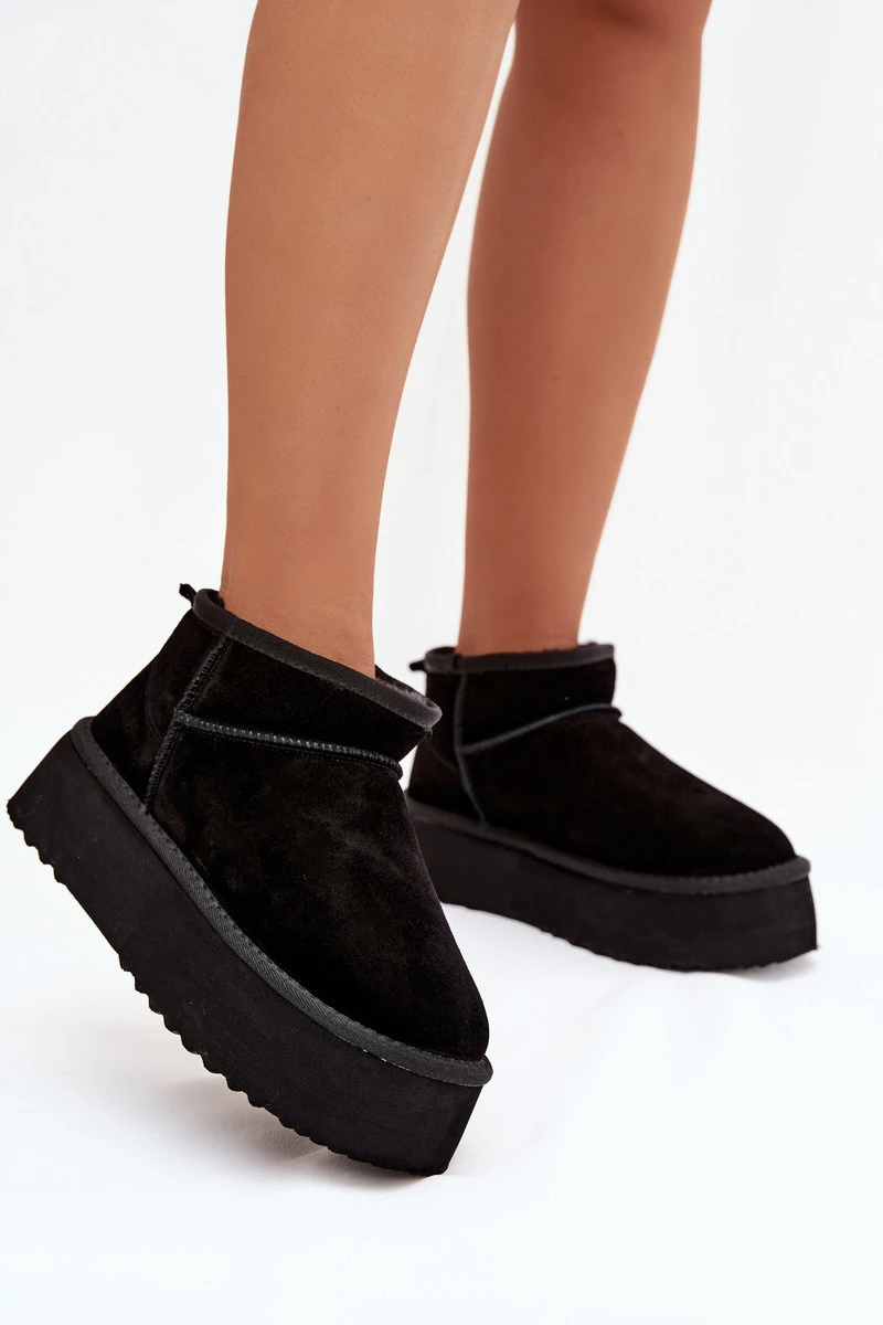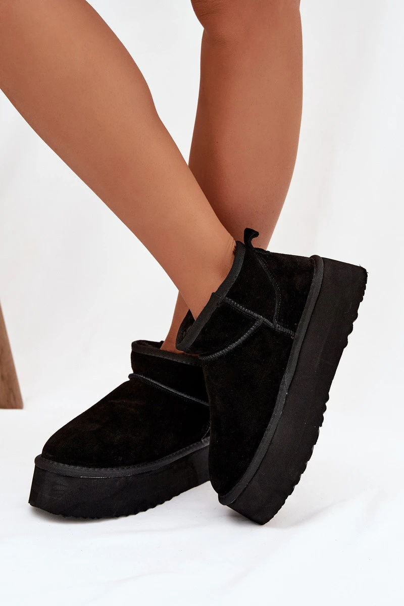 Dámské sněhule vyrobené z přírodního semiše jsou pevnou a stylovou volbou na zimní dny. Umístěné na pohodlné platformě zaručují dobrou izolaci od chladného povrchu a pohodlí při chůzi. Vnitřek je vyhříván silným, měkkým kožíškem, který poskytuje výjimečné teplo, takže boty jsou vhodné i při nízkých teplotách. Je to praktický a módní model ideální pro každodenní zimní stylizace. Při výběru velikosti prosíme řídit se tabulkou velikostí. Při výběru velikosti se řiďte tabulkou velikostí.