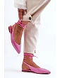 Tyto moderní dámské baleríny jsou osazeny na rovném podpatku a zdobeny malými kovovými kamínky. Mají otevřenou patu a špičku. Tento model je utažený kolem lýtka. Měkká eko kůže vložka zajišťuje pohodlí při nošení. Podrážka je protiskluzová. Při výběru velikosti se řiďte tabulkou velikostí.