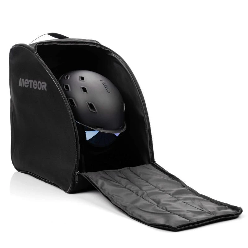- Solidne materiały – zastosowanie tkaniny poliestrowej 600D zapewnia odporność na przemoczenie z zewnątrz. Klapa torby została wypełniona pianką PVC, co sprawia, że jest bardziej odporna na niekorzystane warunki atmosferyczne i może posłużyć jako izolująca podkładka, np. podczas zmiany butów. To wygodne rozwiązanie pozwoli Ci łatwo i szybko przygotować się na stok!