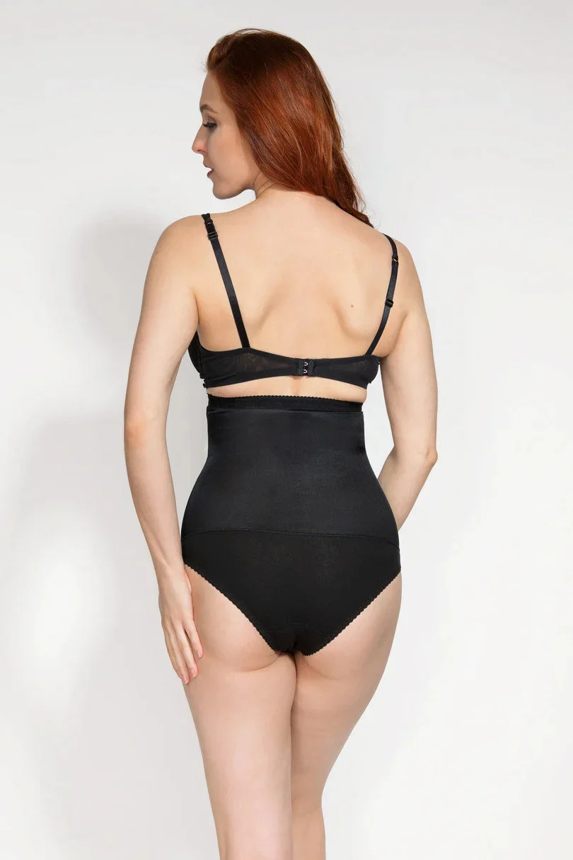 Výrazně zeštíhlující kalhotky s vysokám pasem. Vrchní okraj je podšitý silikonem aby se kalhotky nesesouvaly. Na spodu mají pohodlné zapínání na háčky. Kalhotky mají bavlněnou spodní část.
