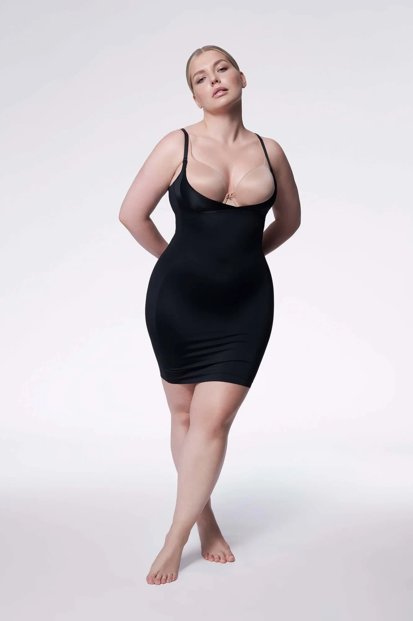 Slip pod prsa se zeštíhlující a tvarující funkcí. Hladký, elastický, vyrobený z prodyšného úpletu. Dokonale se přizpůsobí tělu, zlepšuje tvar břišní partie, tvaruje linii pasu a poprsí. Součástí jsou silikonová ramínka. Vyrobený technologií Invisible Line, umožňuje splynutí pod oblečením. Oblečte si ho a zapomeňte na své komplexy! Složení: 84 % polyamid, 16 % elastan.