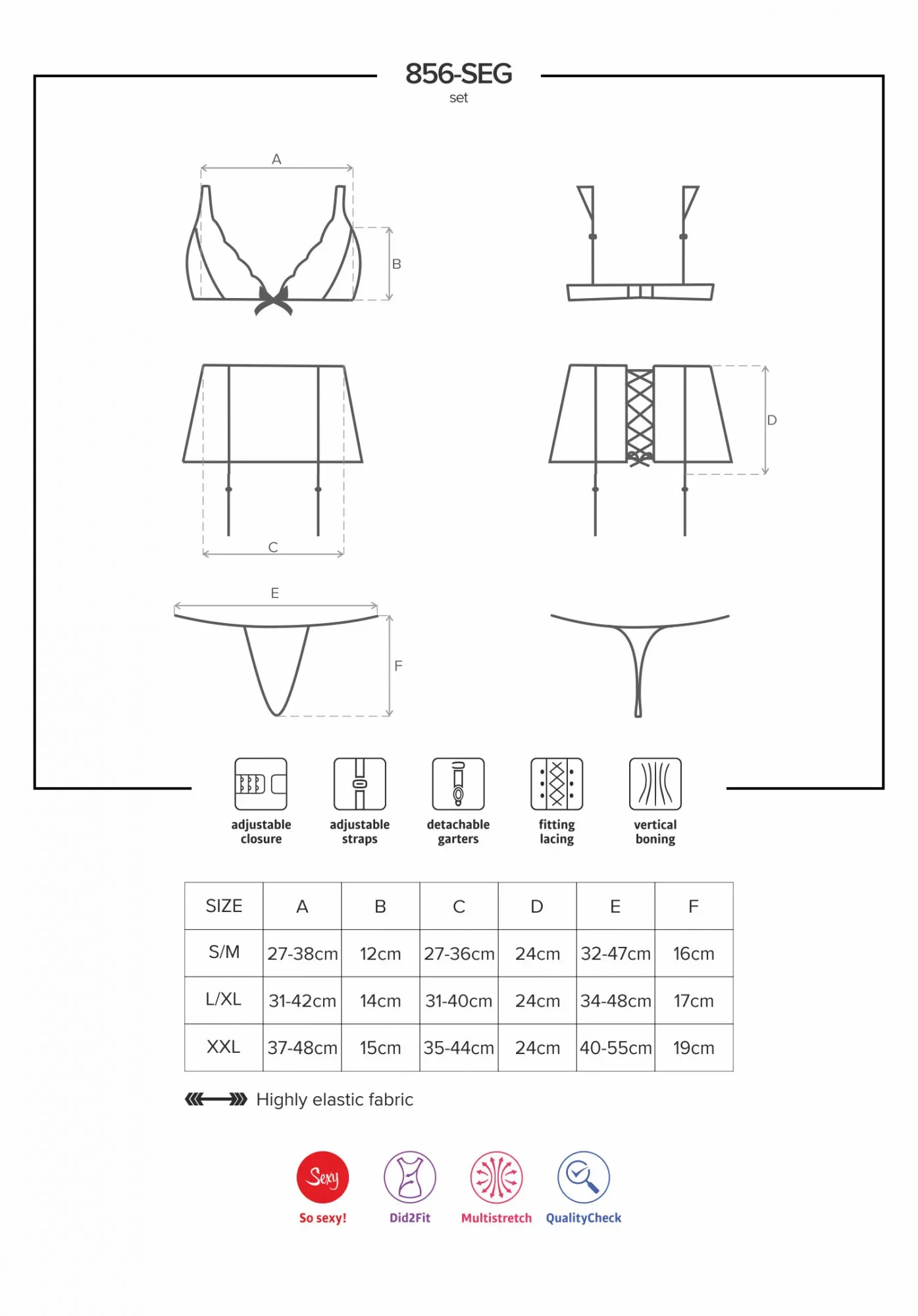 Produkt Žhavý set 856 - SEG - Obsessive prodáváme v těchto velikostech: S/Ma barvách černá5901688218426