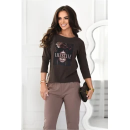 Tato stylová dámská halenka s 3/4 rukávy je spojením pohodlí a moderního designu. Je vyrobena z vysoce kvalitního úpletu (95 % bavlna, 5 % elastan), je měkká, pružná a příjemná na dotek. Delší zaoblená zadní část dodává zajímavý vzhled, zatímco přední část je opatřena módním potiskem, který jí dodává originální nádech. Skvěle se hodí na každodenní nošení, do práce nebo na setkání s přáteli.