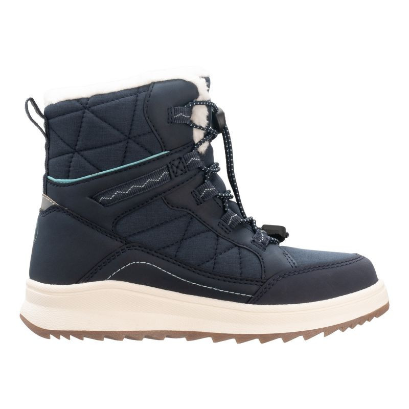 - Dětské zimní boty kombinují voděodolnou konstrukci s melanžovou tkaninou a syntetickou kůží, která poskytuje ochranu před vlhkostí.
