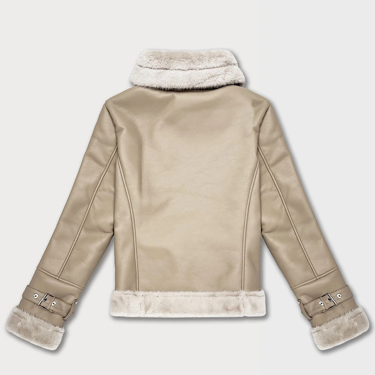 Zimní bunda ramoneska v teplé béžové barvě s kožešinovou podšívkou Glakate (238025##)