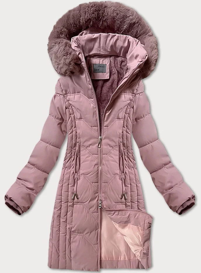 Zimní bunda v pudrově růžové barvě s odepínací kapucí model 21248733 - S'WEST