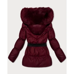 Zimní bunda ve vínové bordó barvě s kapucí a s opaskem model 21479129 - J.STYLE