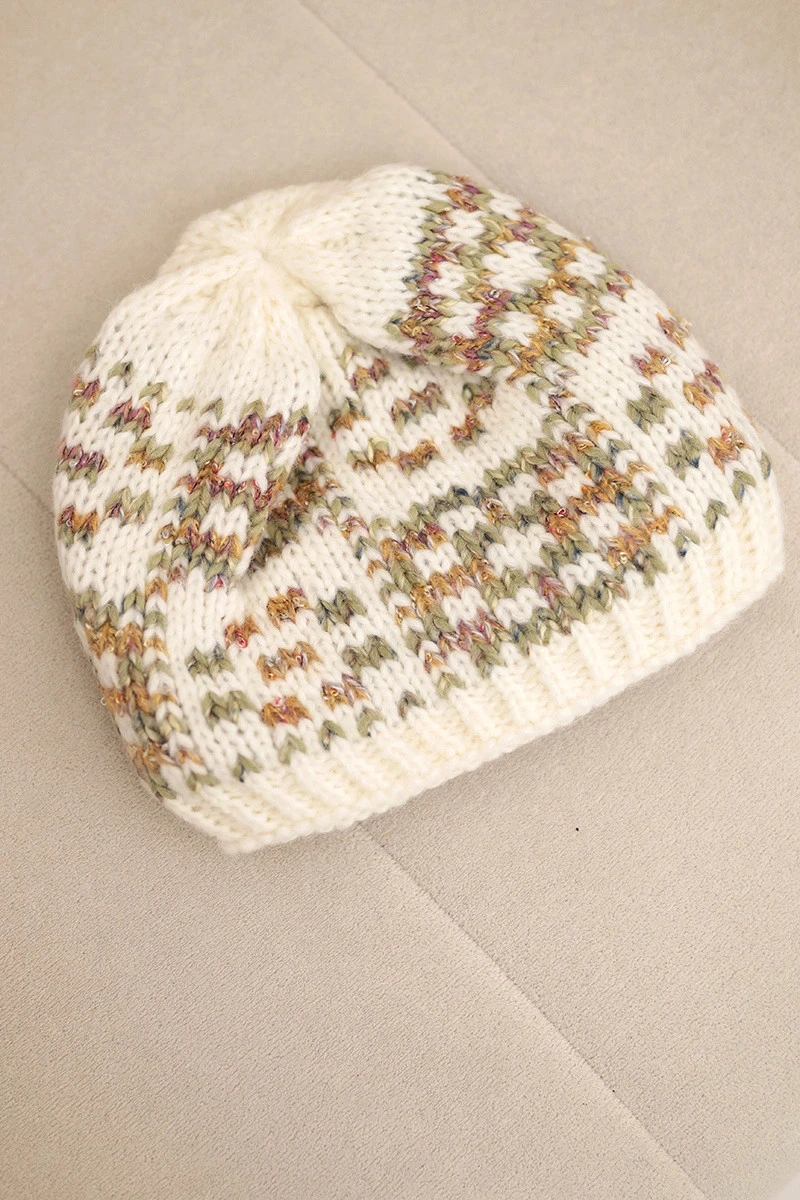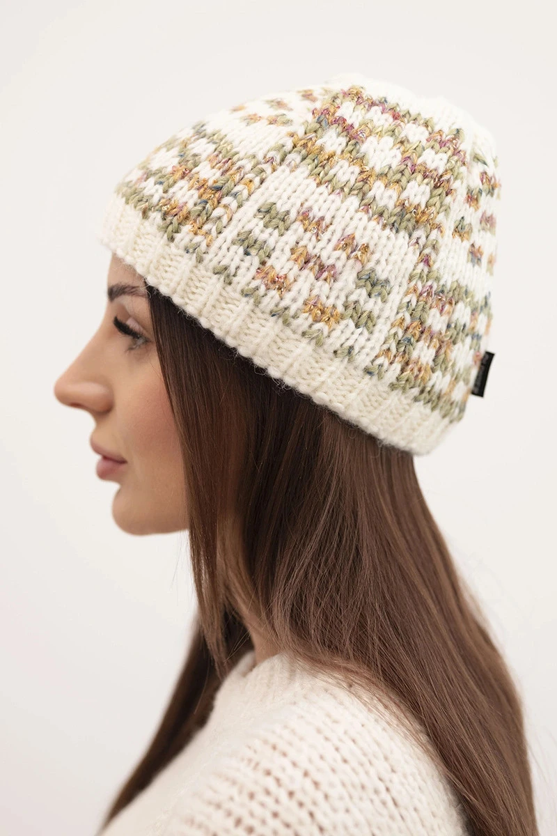 Přidání recenze k Zimní čepice dámská s barevným vláknem a silným nápletem K355 ecru+khaki+tmavě růžový