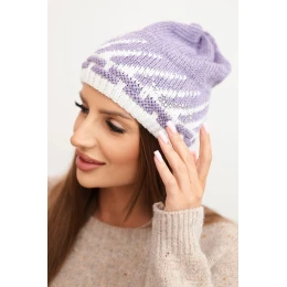 Zimní dámská čepice z vlny s geometrickým vzorem a kamínky K469 fialová