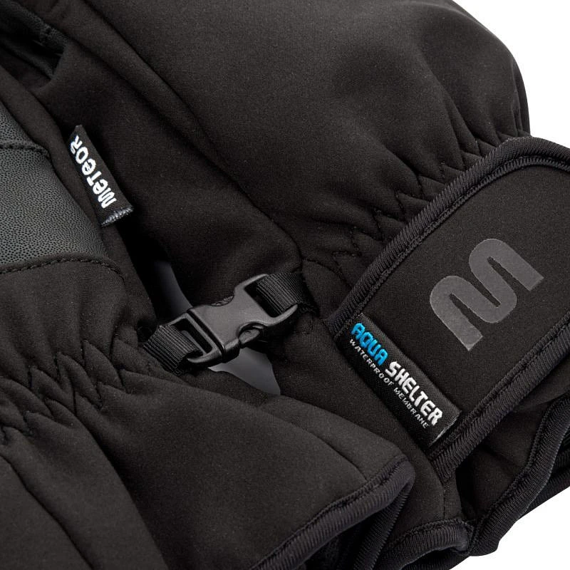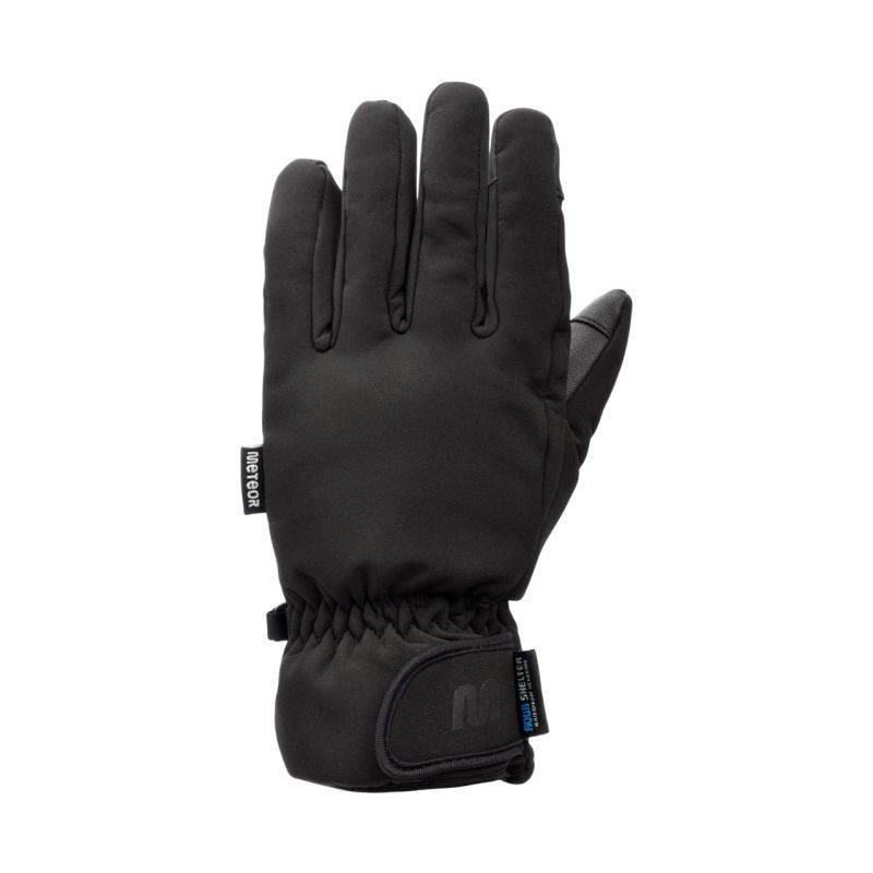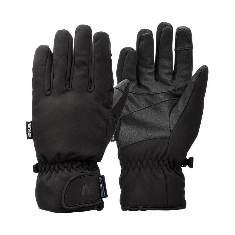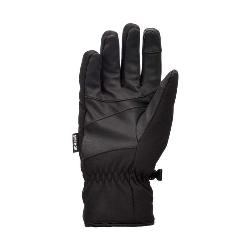 Rękawiczki zimowe Meteor Snorra czarne 17737-17738-17739-17740 Rękawice zimowe Meteor sprawdzą podczas zimowych aktywności outdoorowych. Unisex. Konstrukcja wykonana z trwałych materiałów wspiera ochronę przed zimnem oraz wiatrem. Warstwa zewnętrzna jest odporna na ścieranie, wodoodporna i nie przepuszcza wilgoci. We wnętrzu znajduje się miękki materiał. Gumki na nadgarstkach zabezpieczają wnętrze rękawic przed przedostaniem się chłodu i śniegu z zewnątrz. Uchwyty, dzięki którym nieużywane rękawice swobodnie wiszą na nadgarstkach. Sprzączki zapobiegają zgubieniu pojedynczej sztuki. Pięciopalczasta konstrukcja oferuje swobodę ruchów i nie zaburza czucia dłoni. Dane techniczne:· Materiał: 60% nylon, 35% poliuretan, 5% inne· Wodoodporność: tak
